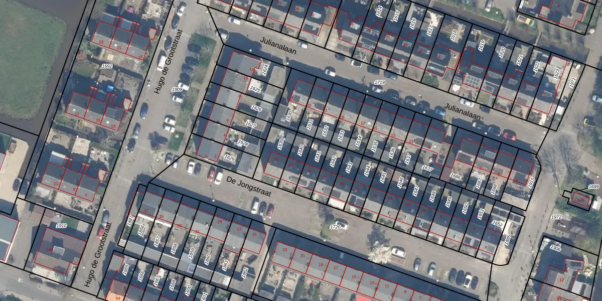 Gebruik de zoekbalk of klik op een perceel om informatie over het perceel te bekijken.