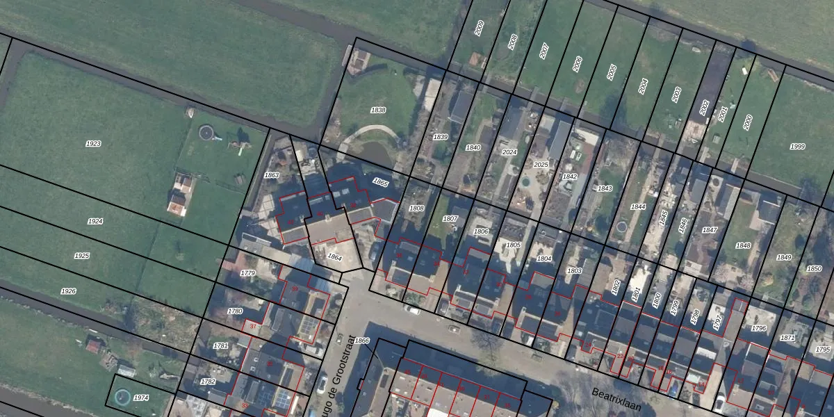 Gebruik de zoekbalk of klik op een perceel om informatie over het perceel te bekijken.