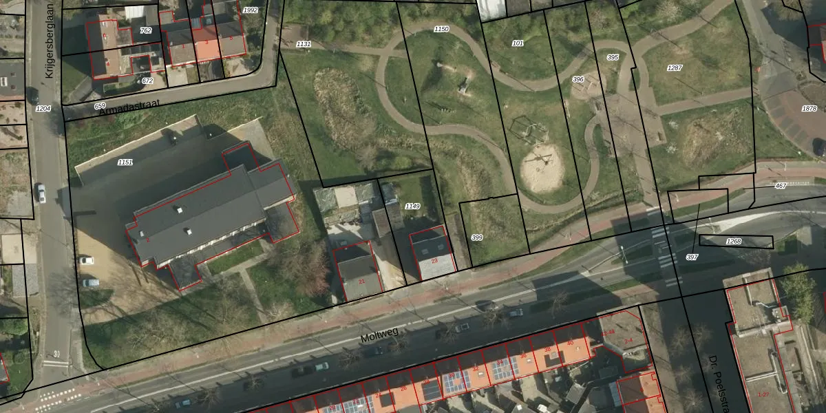 Gebruik de zoekbalk of klik op een perceel om informatie over het perceel te bekijken.