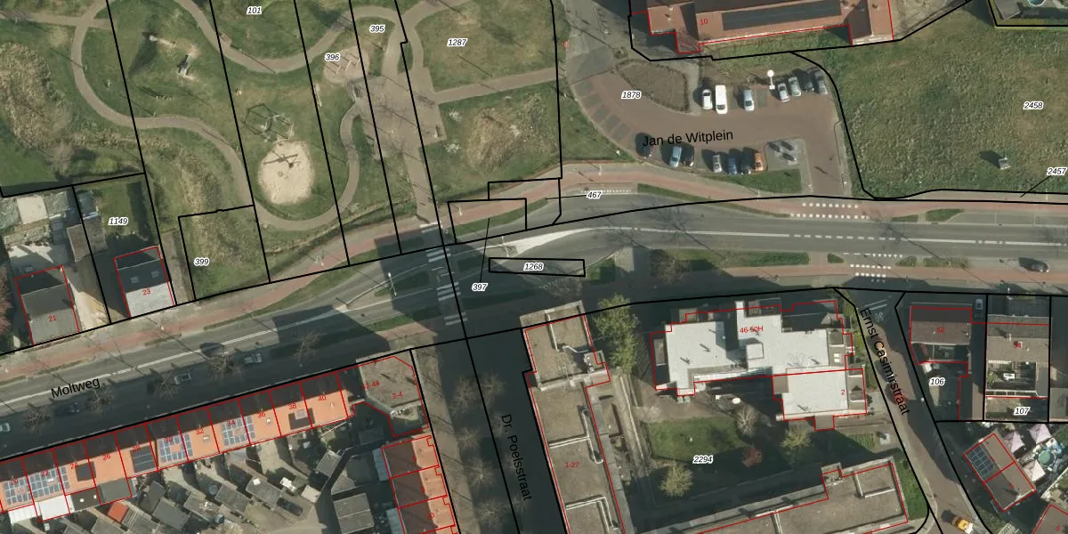 Gebruik de zoekbalk of klik op een perceel om informatie over het perceel te bekijken.