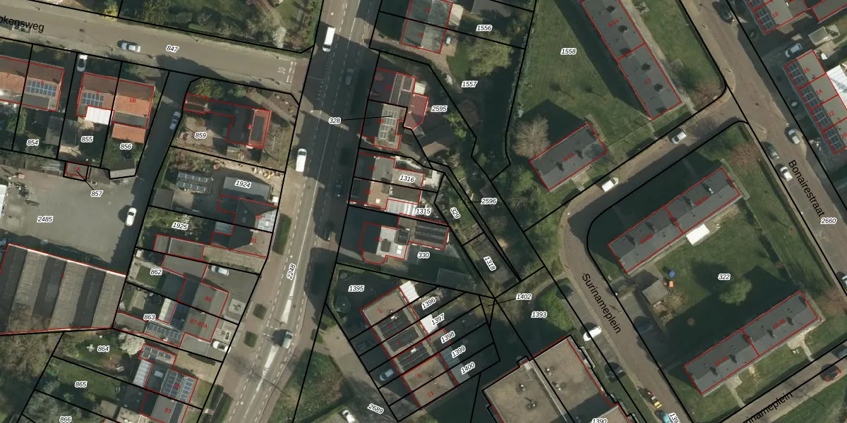 Gebruik de zoekbalk of klik op een perceel om informatie over het perceel te bekijken.