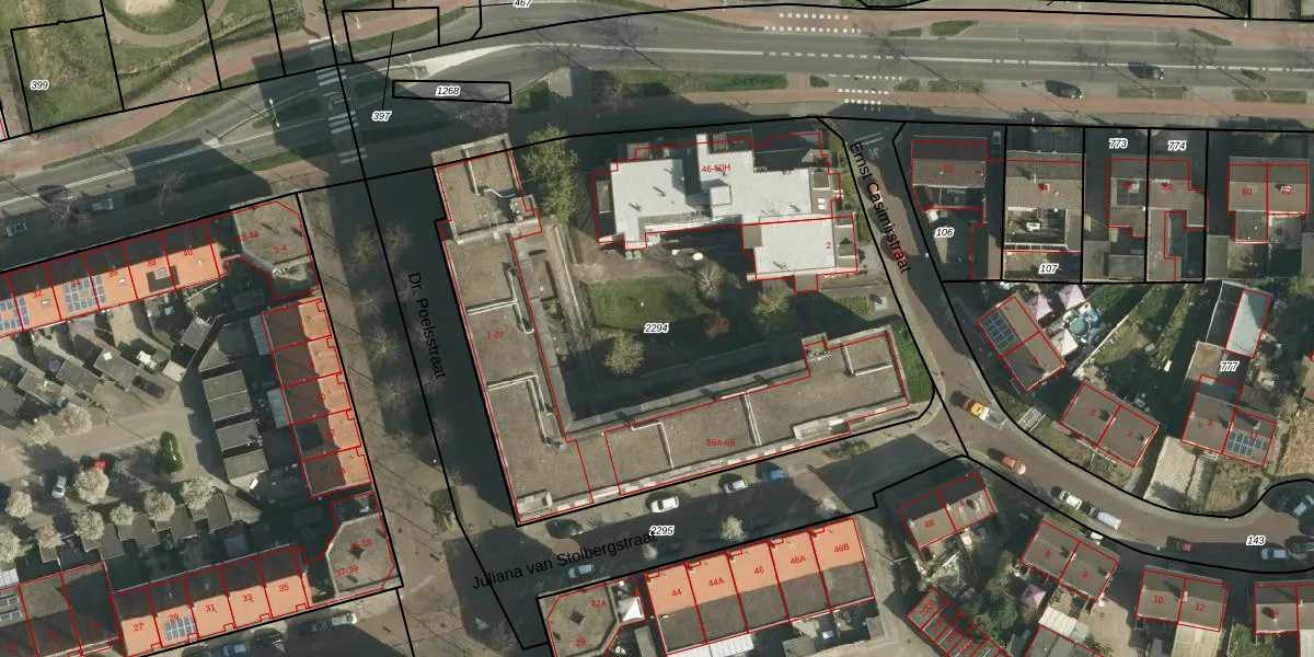 Gebruik de zoekbalk of klik op een perceel om informatie over het perceel te bekijken.