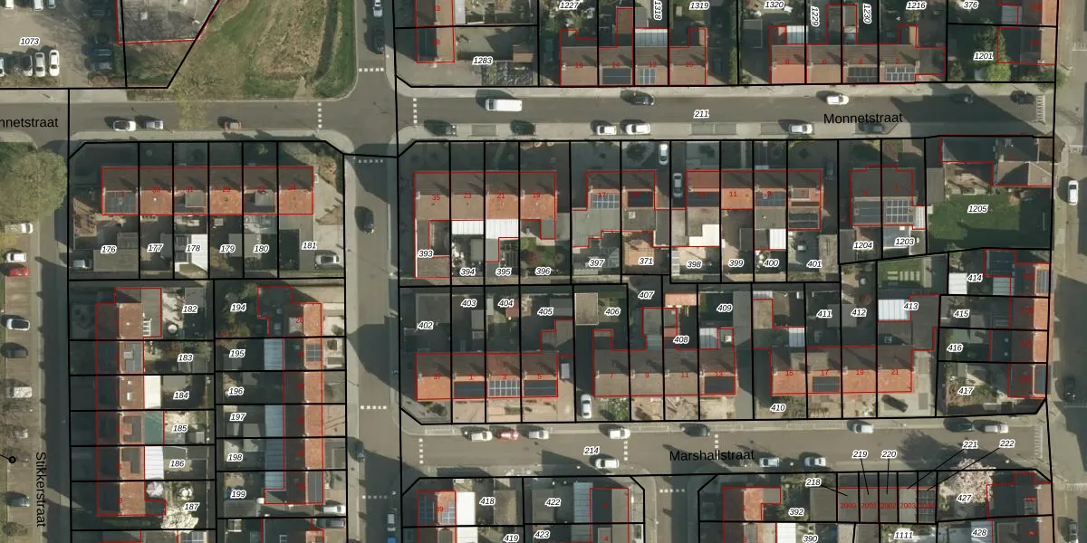 Gebruik de zoekbalk of klik op een perceel om informatie over het perceel te bekijken.