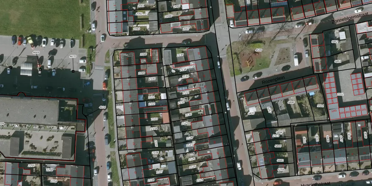 Gebruik de zoekbalk of klik op een perceel om informatie over het perceel te bekijken.