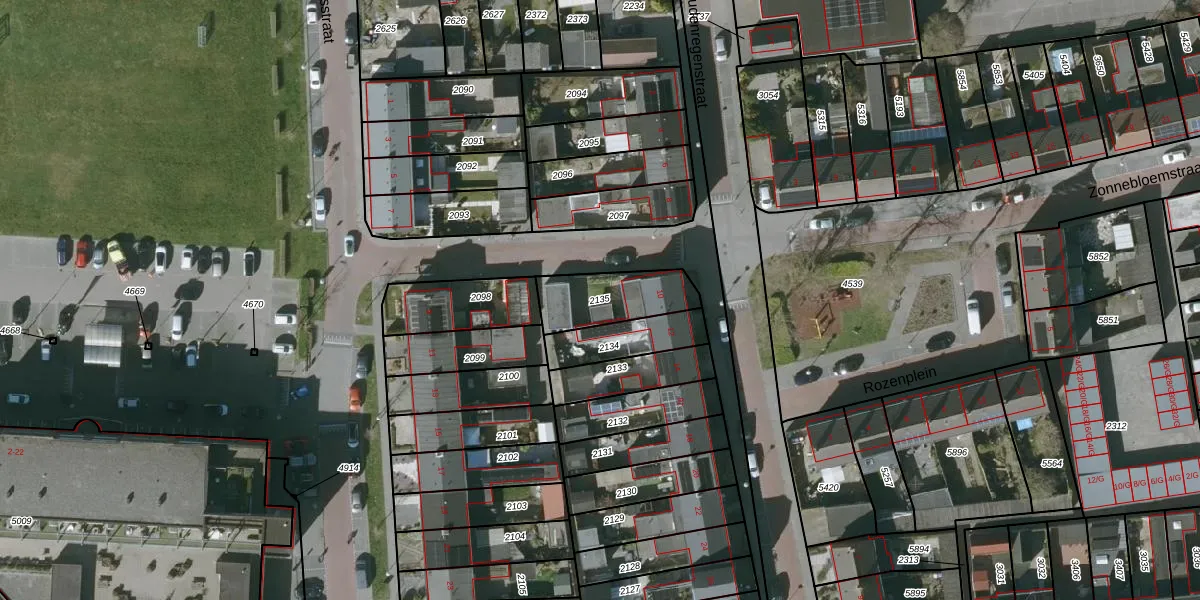 Gebruik de zoekbalk of klik op een perceel om informatie over het perceel te bekijken.