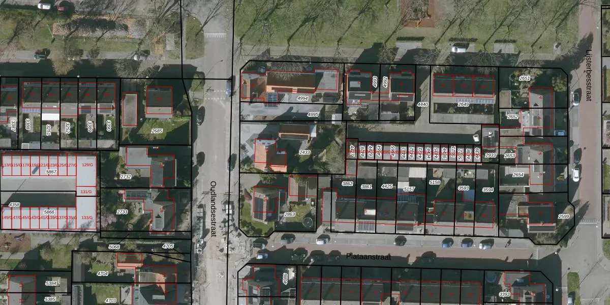 Gebruik de zoekbalk of klik op een perceel om informatie over het perceel te bekijken.