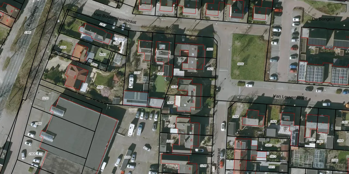 Gebruik de zoekbalk of klik op een perceel om informatie over het perceel te bekijken.