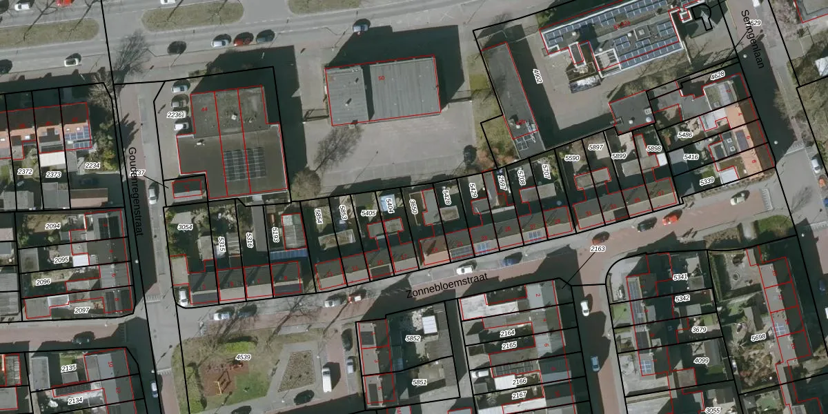 Gebruik de zoekbalk of klik op een perceel om informatie over het perceel te bekijken.