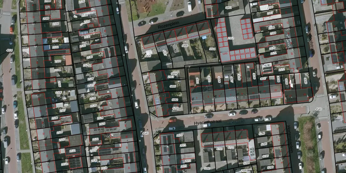Gebruik de zoekbalk of klik op een perceel om informatie over het perceel te bekijken.