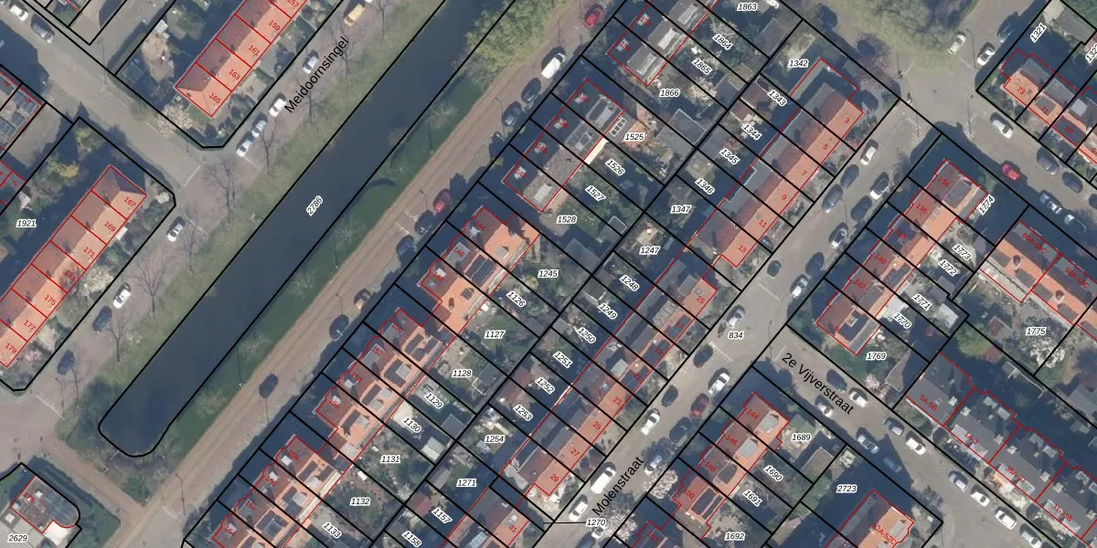 Gebruik de zoekbalk of klik op een perceel om informatie over het perceel te bekijken.