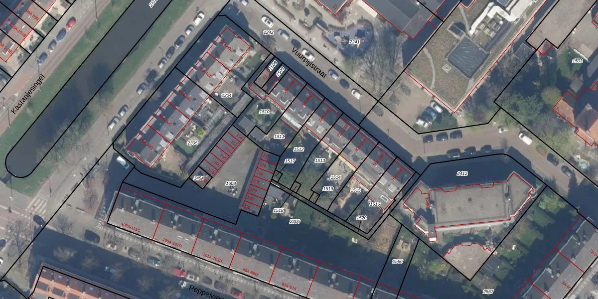 Gebruik de zoekbalk of klik op een perceel om informatie over het perceel te bekijken.