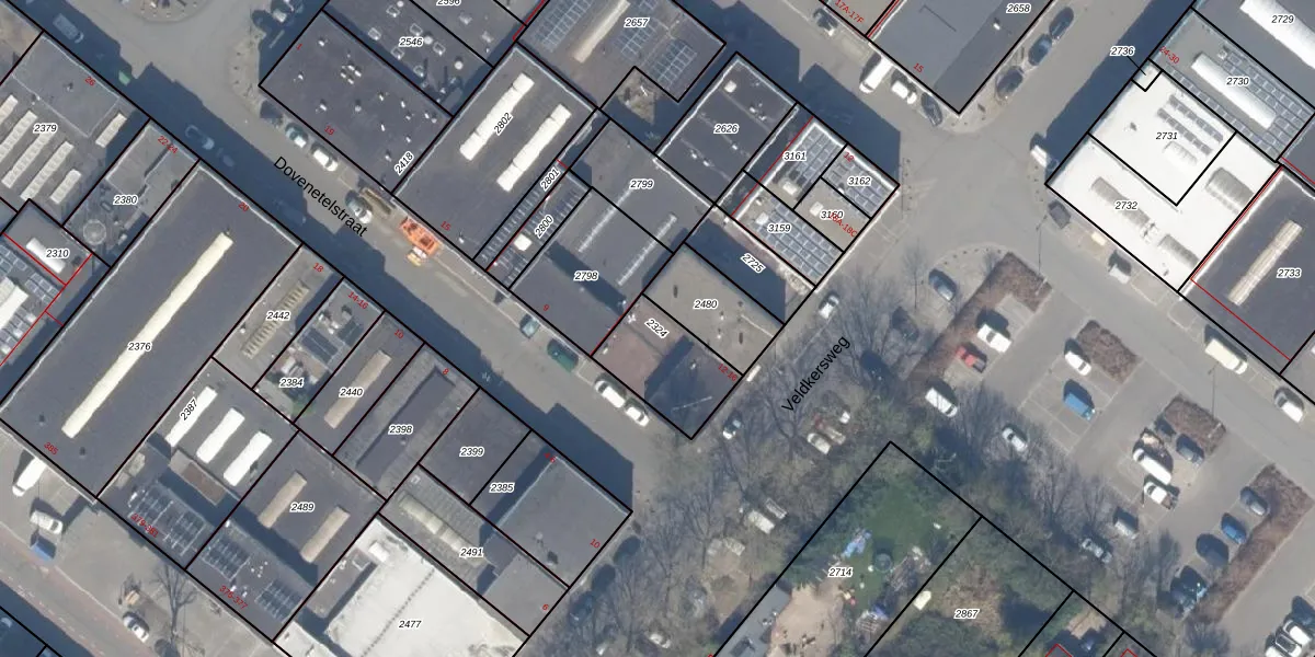 Gebruik de zoekbalk of klik op een perceel om informatie over het perceel te bekijken.