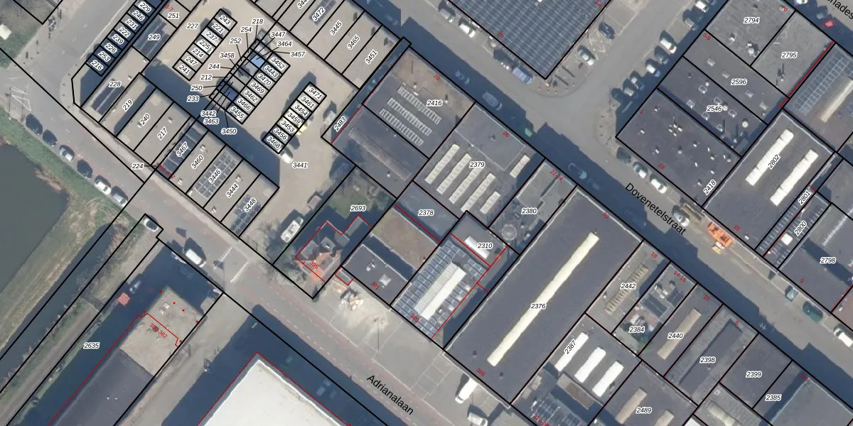 Gebruik de zoekbalk of klik op een perceel om informatie over het perceel te bekijken.