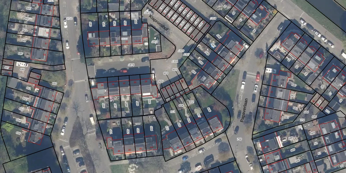 Gebruik de zoekbalk of klik op een perceel om informatie over het perceel te bekijken.