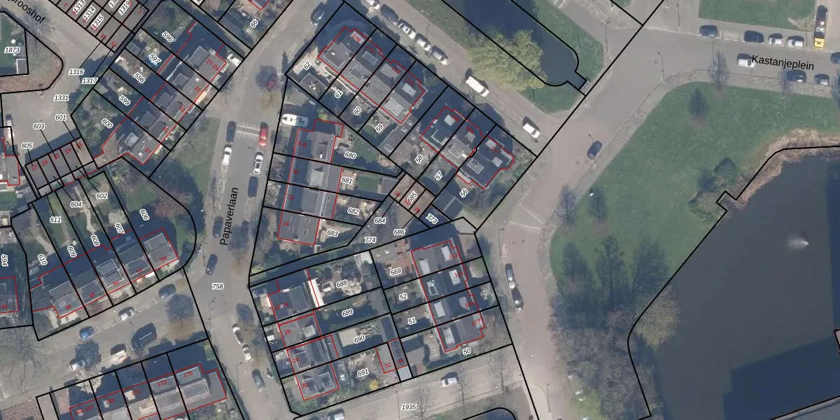 Gebruik de zoekbalk of klik op een perceel om informatie over het perceel te bekijken.