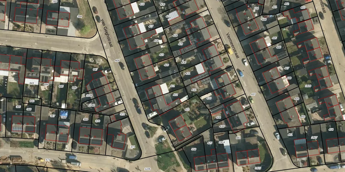 Gebruik de zoekbalk of klik op een perceel om informatie over het perceel te bekijken.