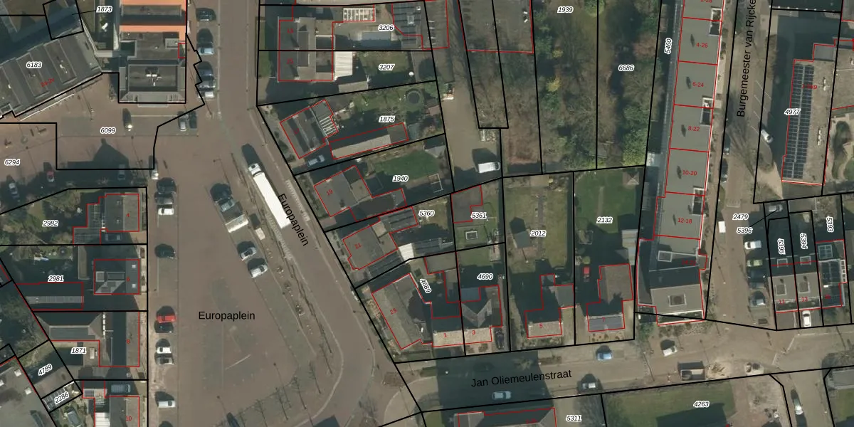 Gebruik de zoekbalk of klik op een perceel om informatie over het perceel te bekijken.
