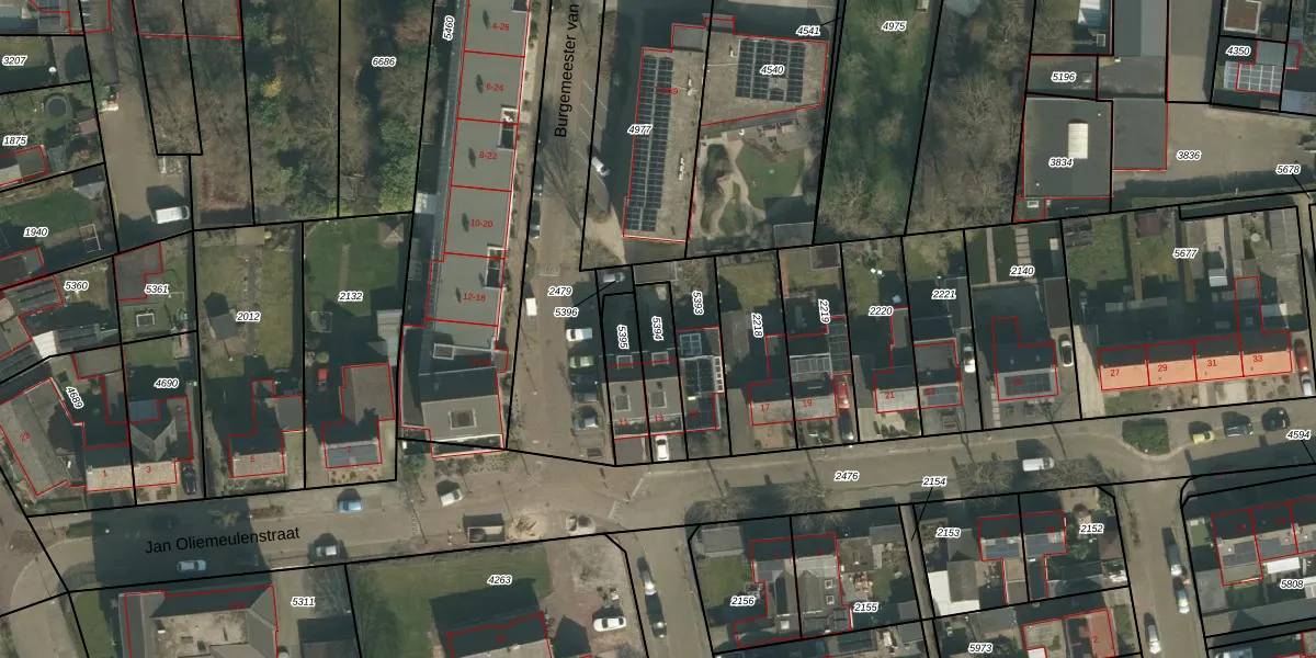 Gebruik de zoekbalk of klik op een perceel om informatie over het perceel te bekijken.