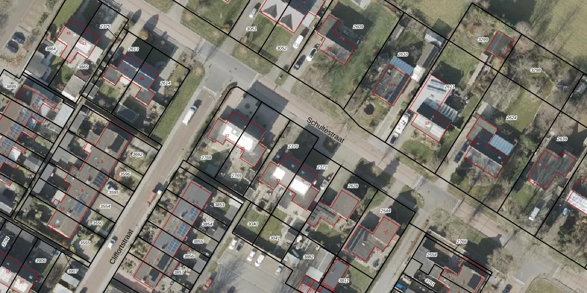 Gebruik de zoekbalk of klik op een perceel om informatie over het perceel te bekijken.