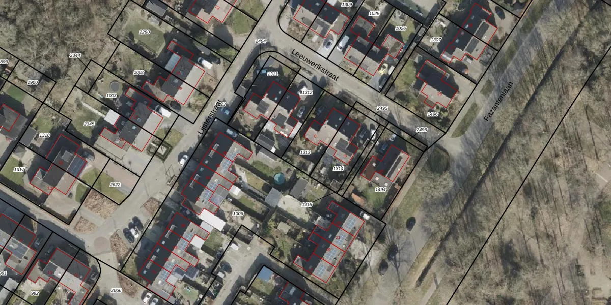 Gebruik de zoekbalk of klik op een perceel om informatie over het perceel te bekijken.