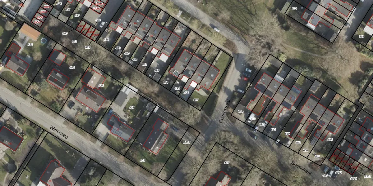 Gebruik de zoekbalk of klik op een perceel om informatie over het perceel te bekijken.