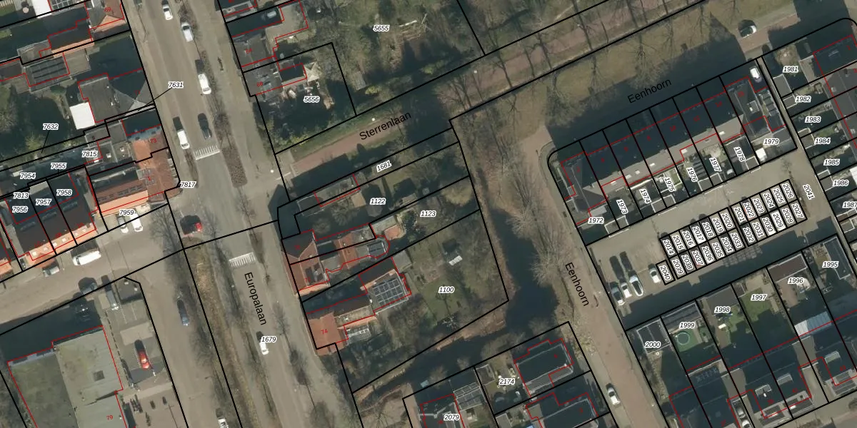 Gebruik de zoekbalk of klik op een perceel om informatie over het perceel te bekijken.