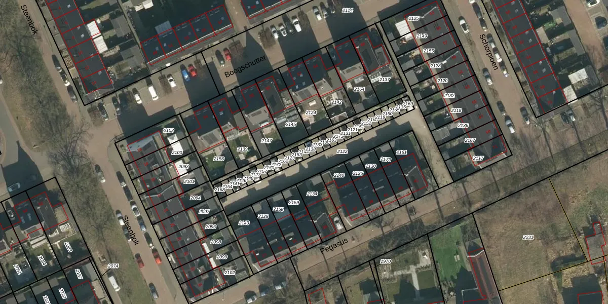 Gebruik de zoekbalk of klik op een perceel om informatie over het perceel te bekijken.