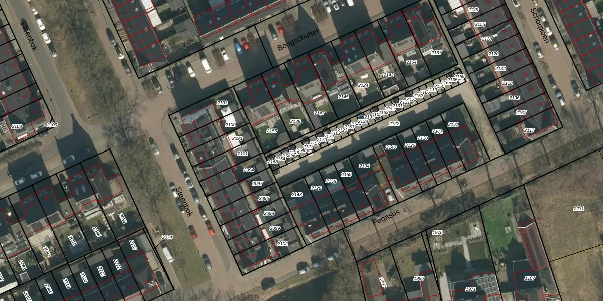 Gebruik de zoekbalk of klik op een perceel om informatie over het perceel te bekijken.