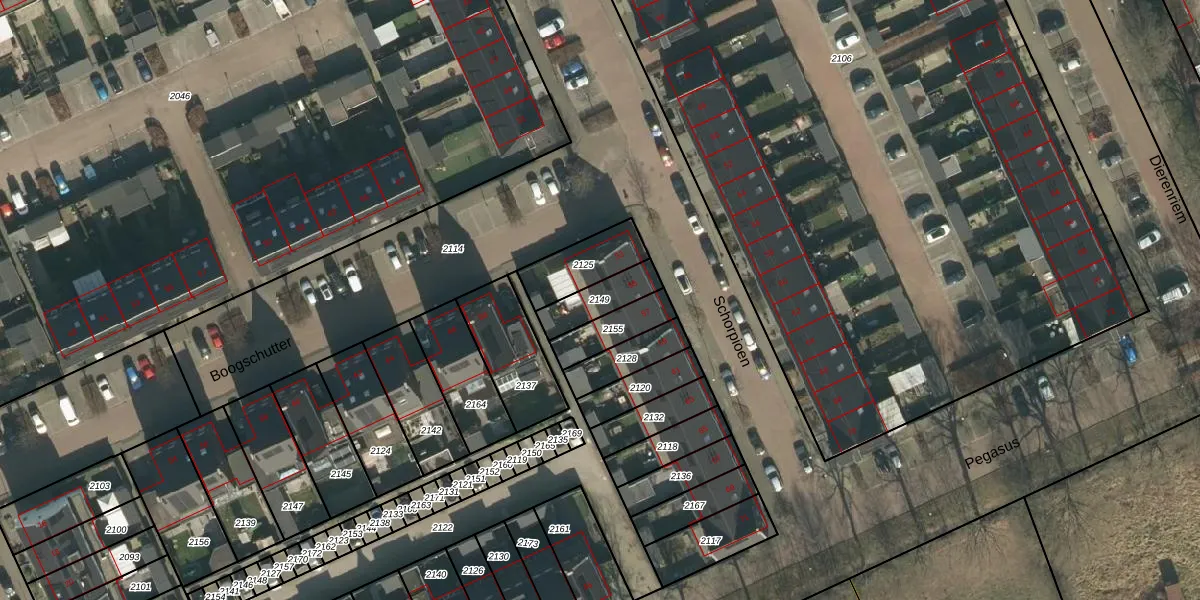 Gebruik de zoekbalk of klik op een perceel om informatie over het perceel te bekijken.