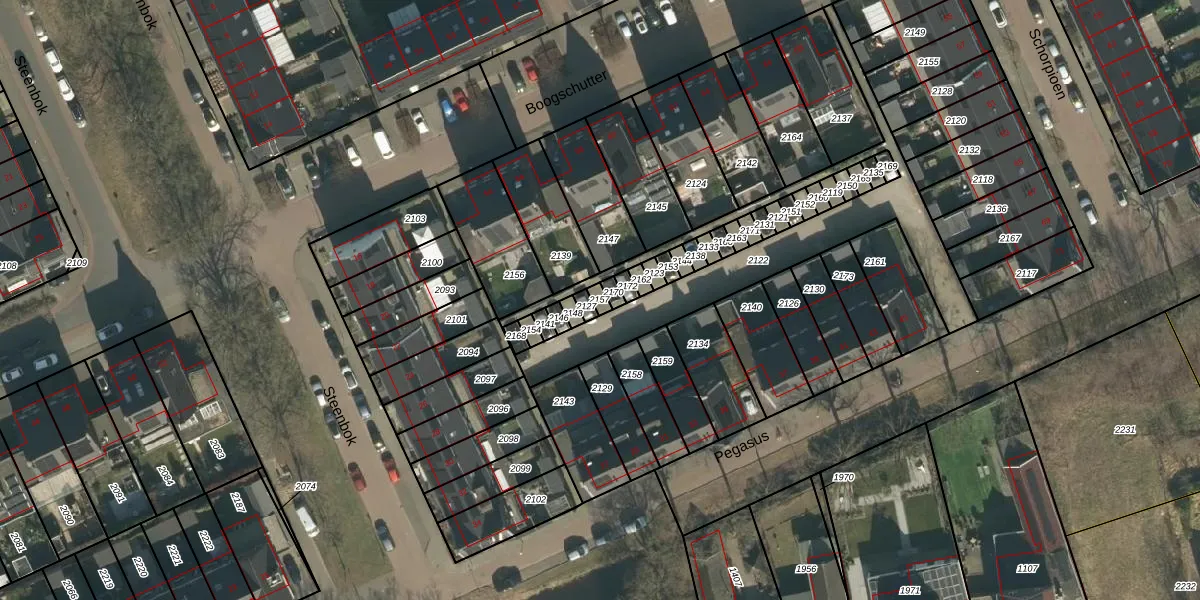 Gebruik de zoekbalk of klik op een perceel om informatie over het perceel te bekijken.