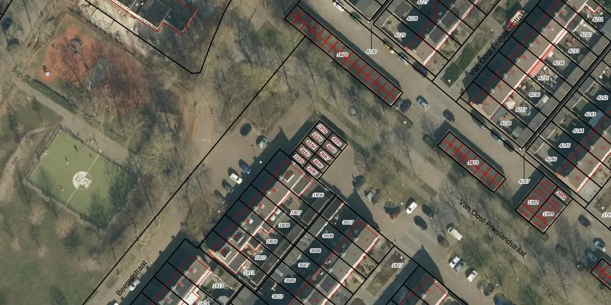 Gebruik de zoekbalk of klik op een perceel om informatie over het perceel te bekijken.
