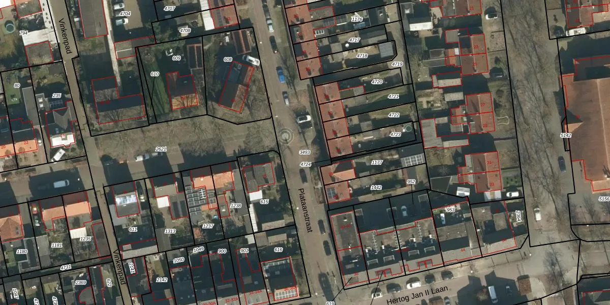 Gebruik de zoekbalk of klik op een perceel om informatie over het perceel te bekijken.