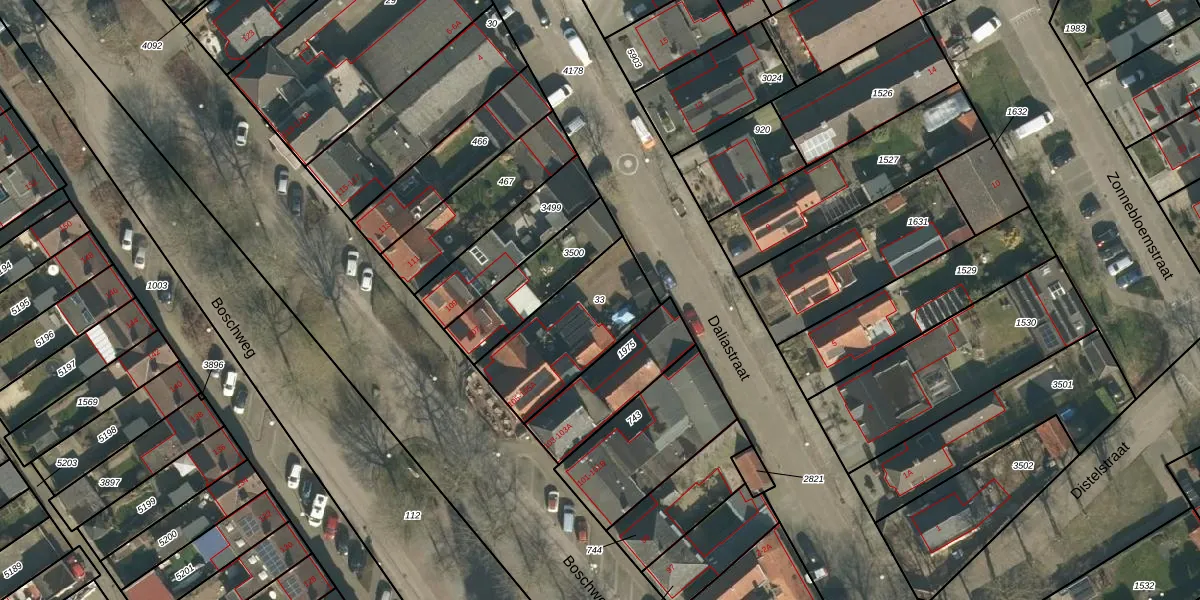 Gebruik de zoekbalk of klik op een perceel om informatie over het perceel te bekijken.