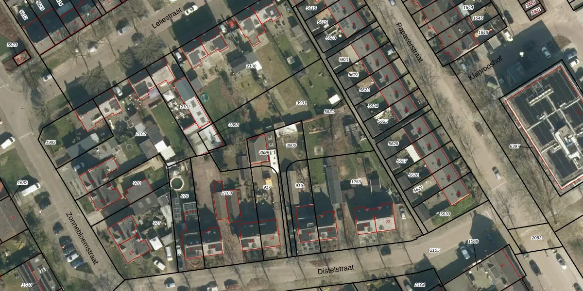 Gebruik de zoekbalk of klik op een perceel om informatie over het perceel te bekijken.