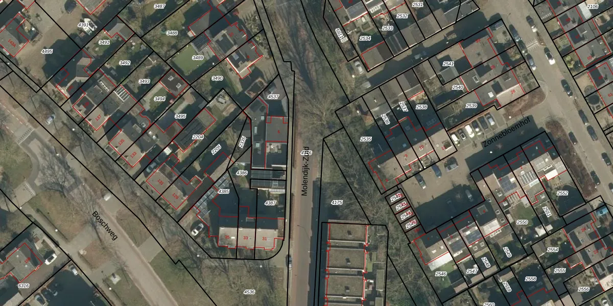 Gebruik de zoekbalk of klik op een perceel om informatie over het perceel te bekijken.