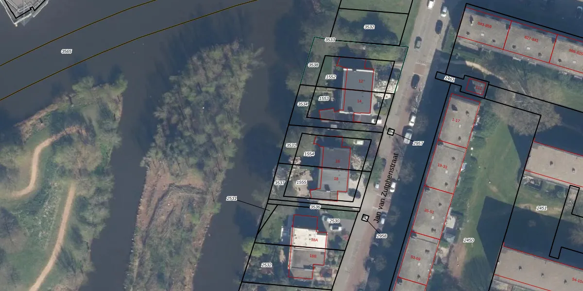 Gebruik de zoekbalk of klik op een perceel om informatie over het perceel te bekijken.