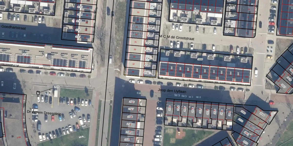Gebruik de zoekbalk of klik op een perceel om informatie over het perceel te bekijken.