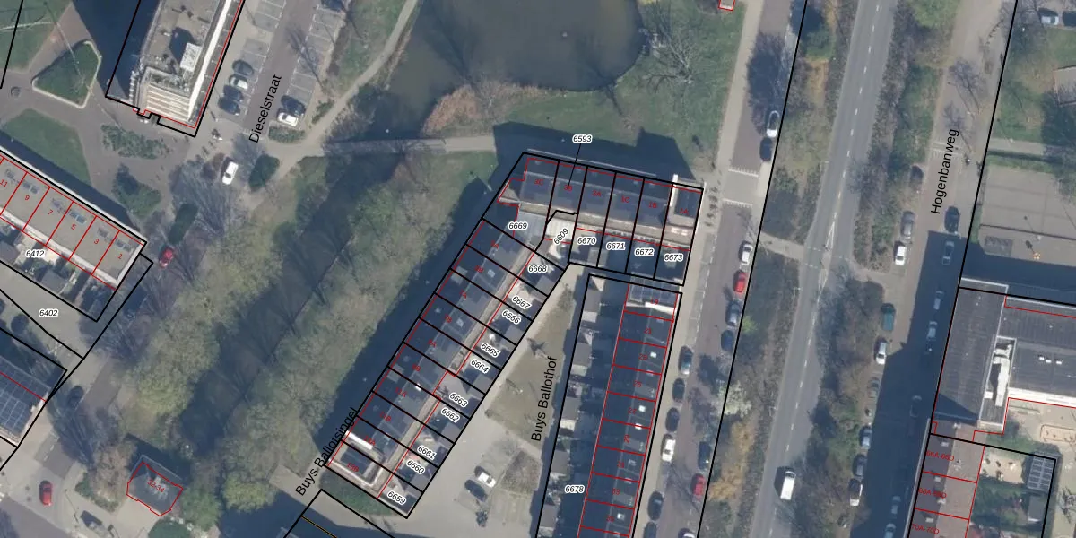 Gebruik de zoekbalk of klik op een perceel om informatie over het perceel te bekijken.