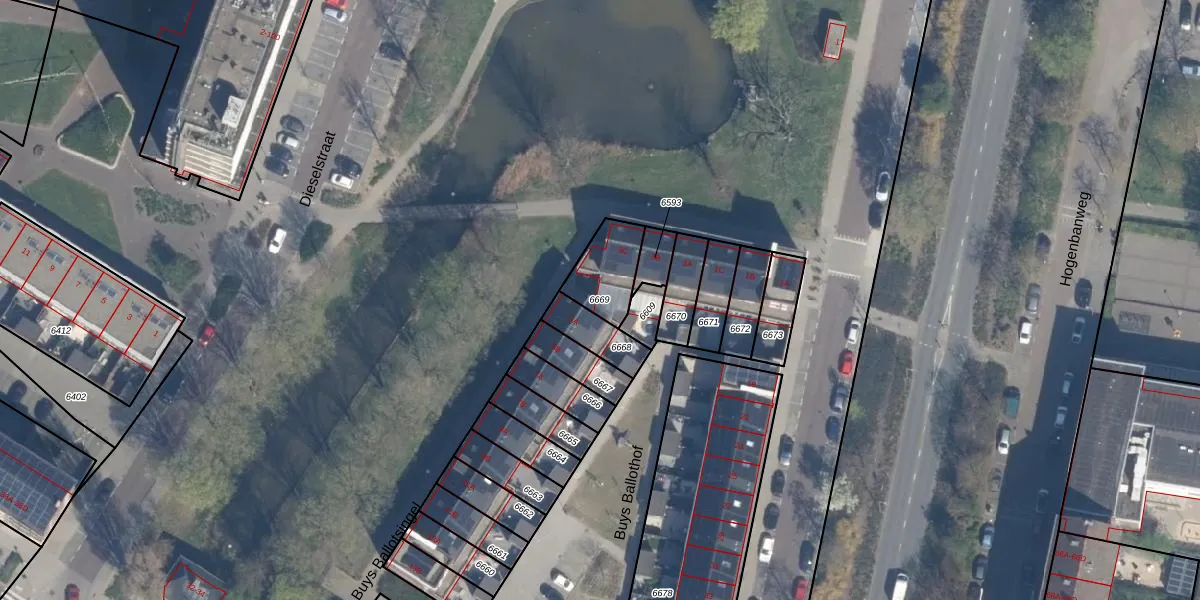 Gebruik de zoekbalk of klik op een perceel om informatie over het perceel te bekijken.