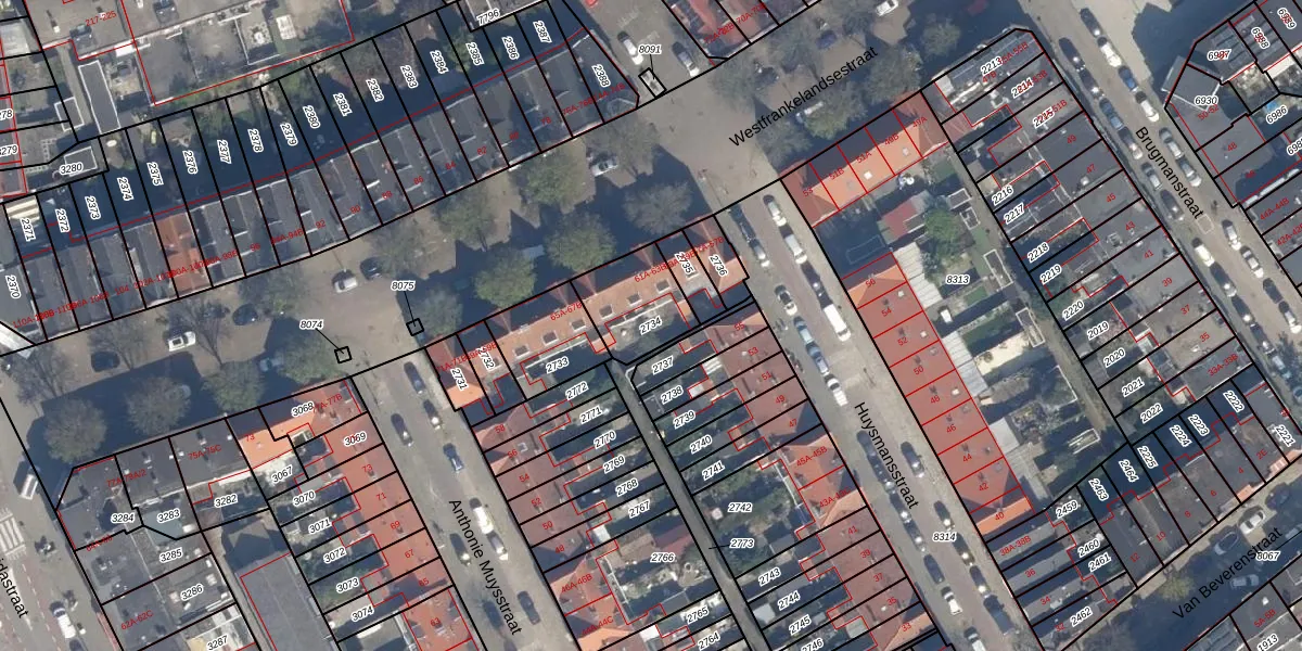 Gebruik de zoekbalk of klik op een perceel om informatie over het perceel te bekijken.