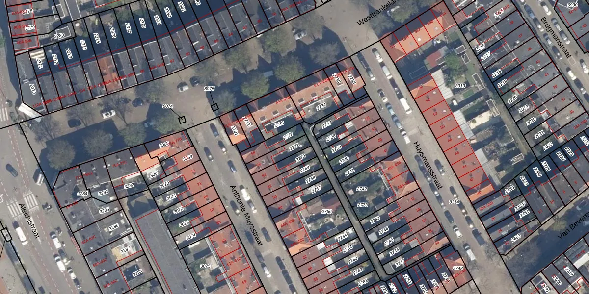 Gebruik de zoekbalk of klik op een perceel om informatie over het perceel te bekijken.