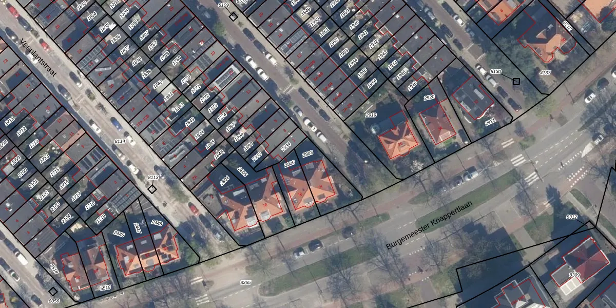 Gebruik de zoekbalk of klik op een perceel om informatie over het perceel te bekijken.