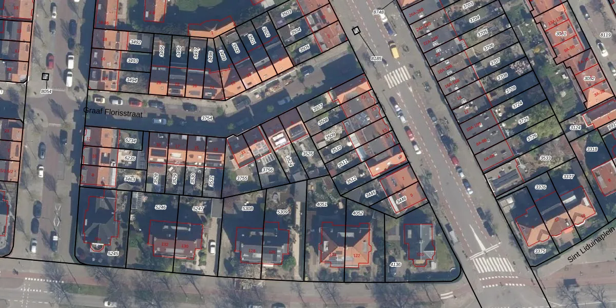 Gebruik de zoekbalk of klik op een perceel om informatie over het perceel te bekijken.