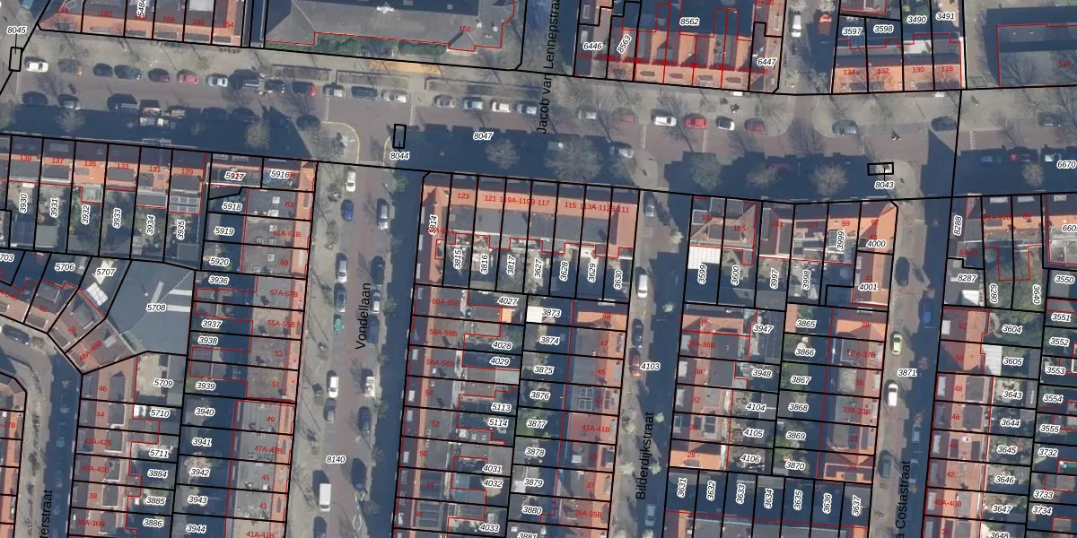 Gebruik de zoekbalk of klik op een perceel om informatie over het perceel te bekijken.