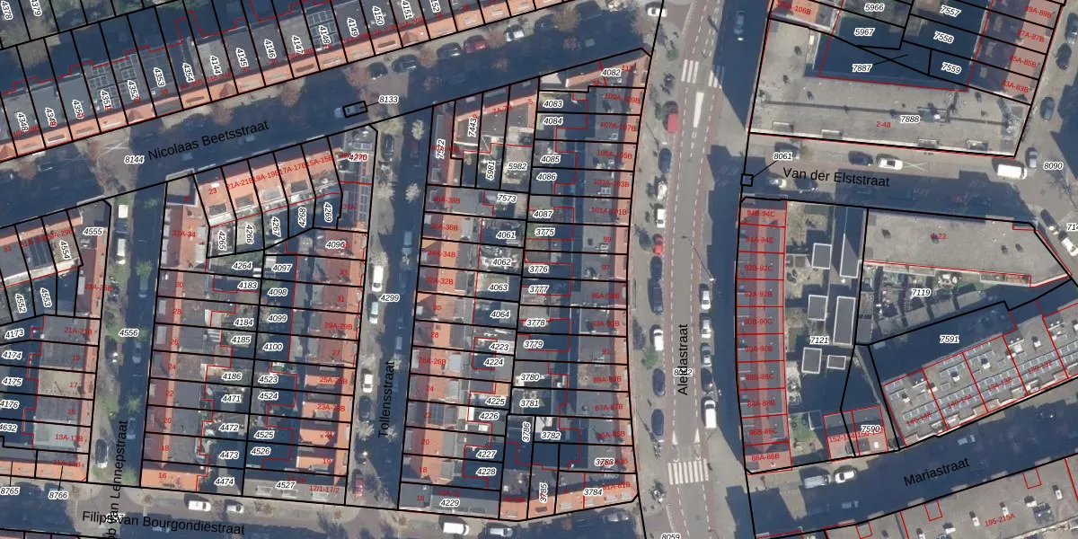 Gebruik de zoekbalk of klik op een perceel om informatie over het perceel te bekijken.