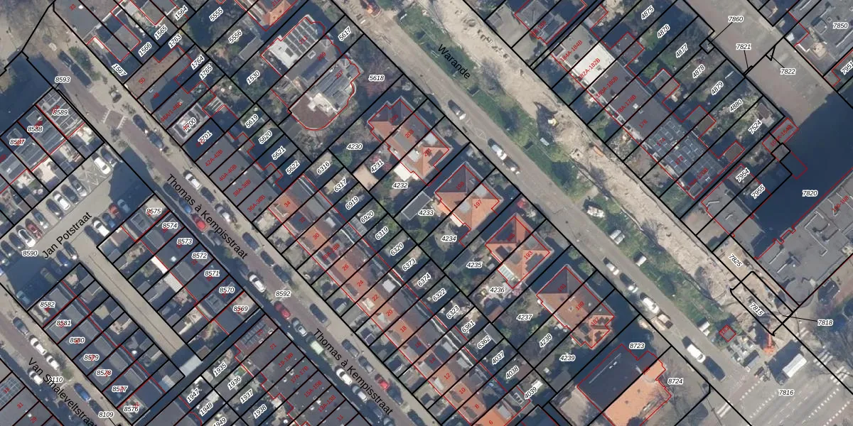 Gebruik de zoekbalk of klik op een perceel om informatie over het perceel te bekijken.