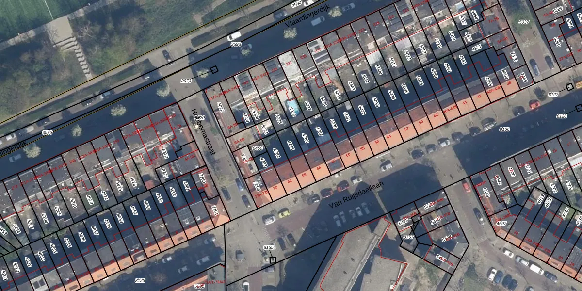 Gebruik de zoekbalk of klik op een perceel om informatie over het perceel te bekijken.