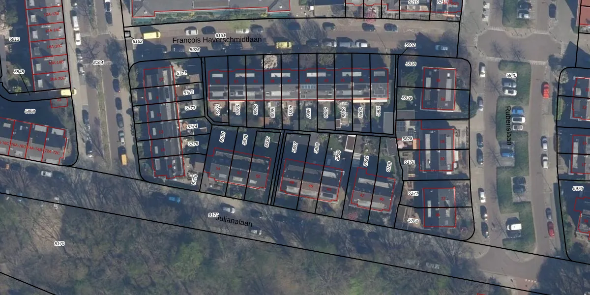Gebruik de zoekbalk of klik op een perceel om informatie over het perceel te bekijken.