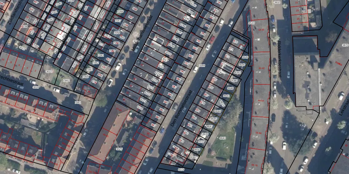 Gebruik de zoekbalk of klik op een perceel om informatie over het perceel te bekijken.