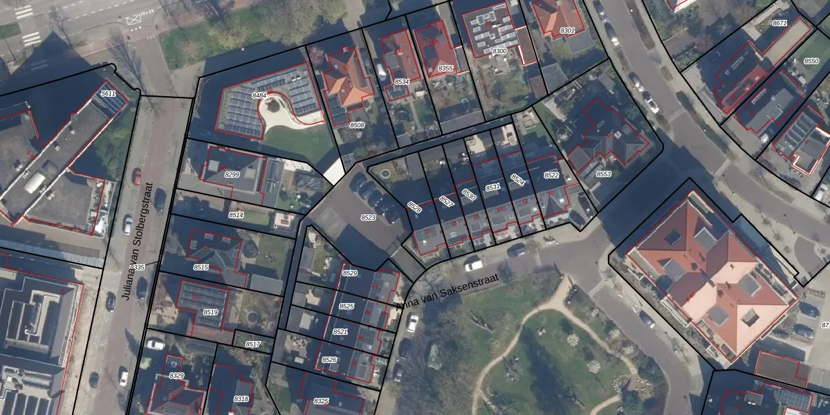 Gebruik de zoekbalk of klik op een perceel om informatie over het perceel te bekijken.